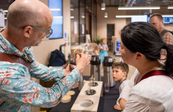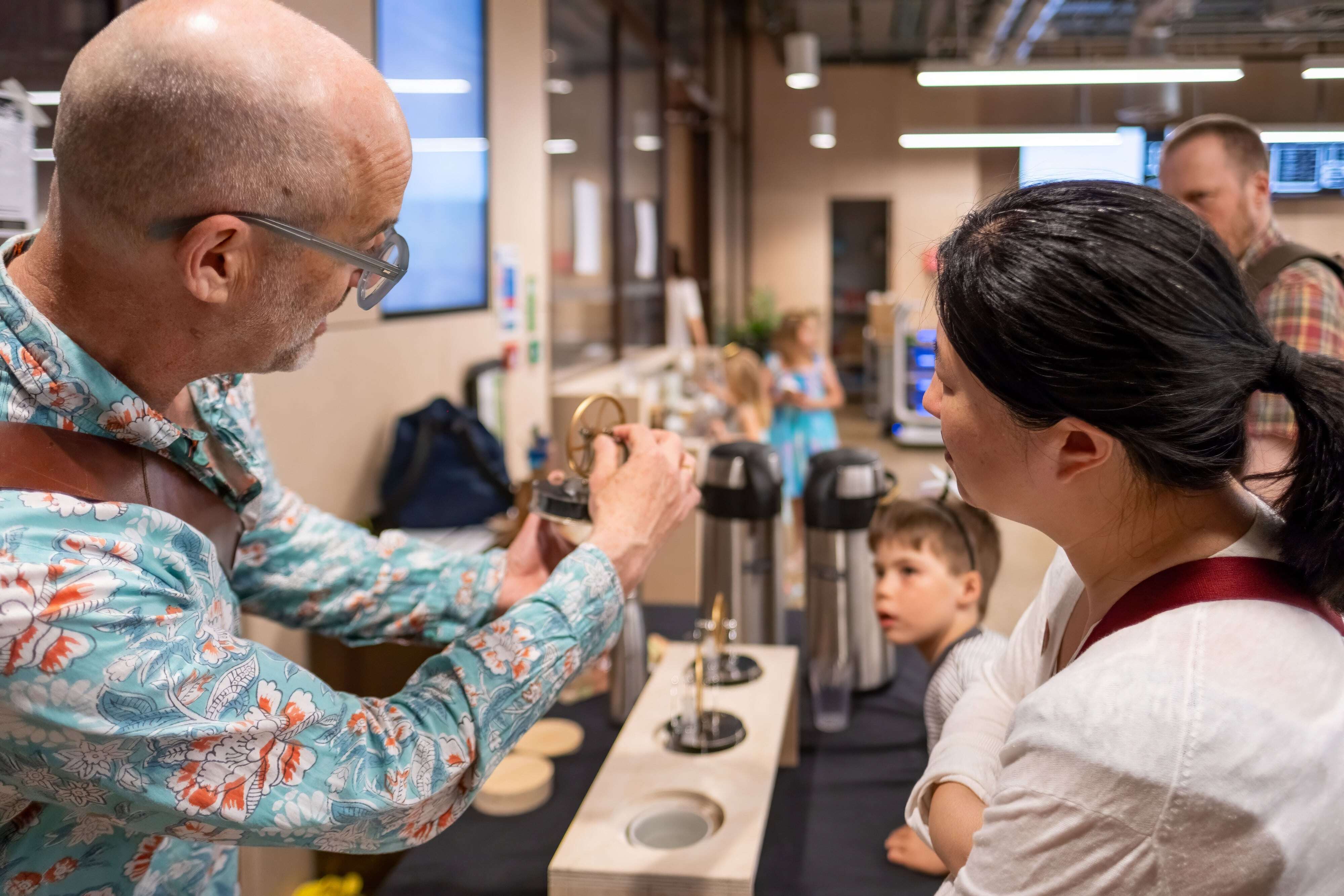We delved into this world at varying scales: from the gigantic, mind-boggling heights of hot air balloons and a hand-built electric hovercraft (with a tombola system for rides, of course), to palm-sized tea-powered Stirling engines.